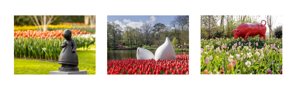 Keukenhof is niet alleen een fraai decor voor 7 miljoen voorjaarsbloeiers, maar leent zich ook uitstekend voor beeldhouwwerken en andere kunstobjecten. Die geven het park een extra dimensie. Keukenhof heeft een samenwerking met het Museum Kröller-Müller en 25 kunstenaars. De combinatie van het bloeiende park en beeldende kunst is verrassend.