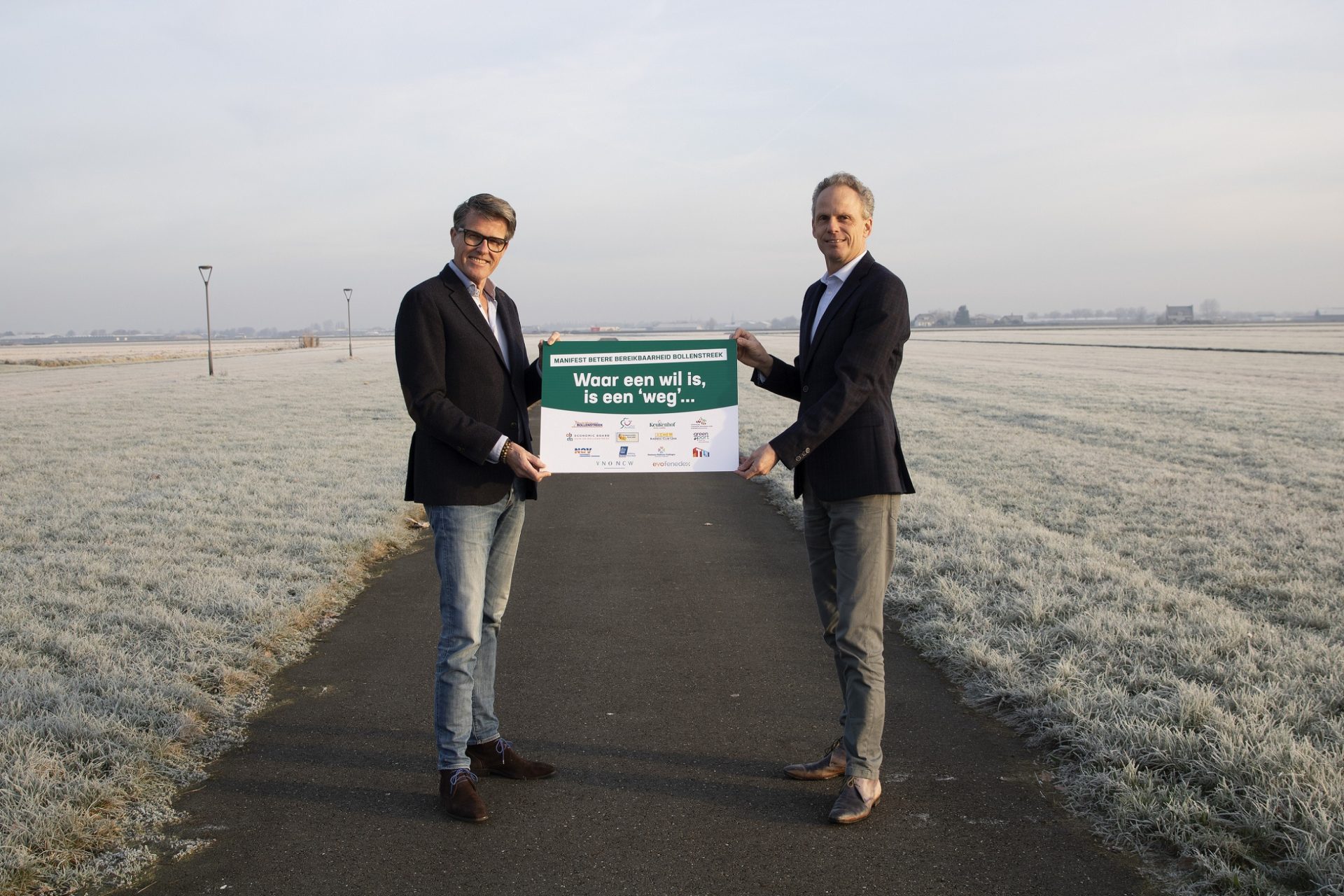 Willem Heemskerk, voorzitter Bedrijfsleven Bollenstreek, en Bart Siemerink, directeur Keukenhof, twee van de 14 initiatiefnemers van het manifest, benadrukken de urgentie om met een eenduidig uitvoeringsplan te komen. Een regionale oplossing om de bereikbaarheid van de Duin- en Bollenstreek te verbeteren.