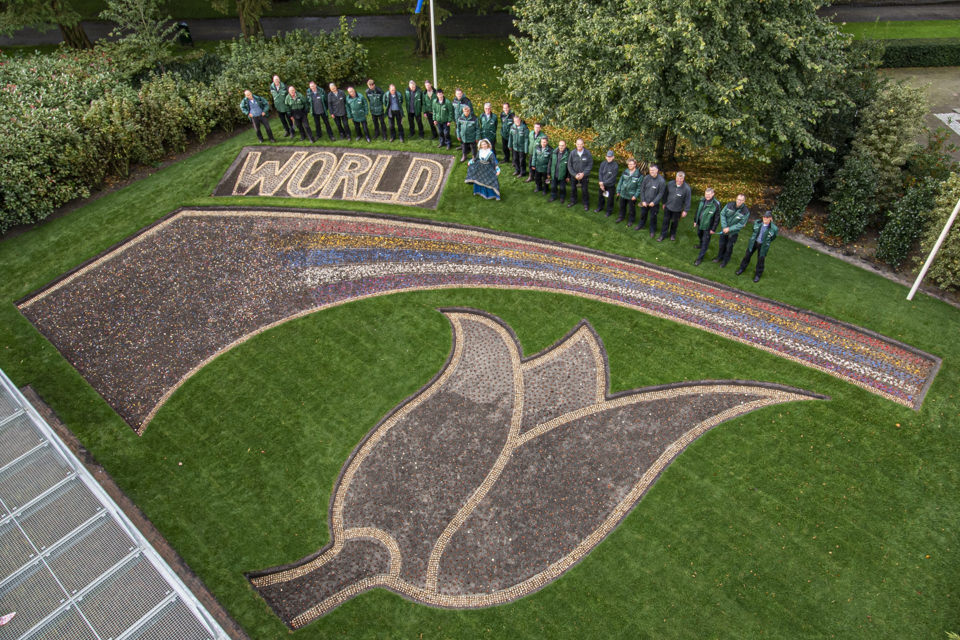 Lisse, op donderdag 3 oktober hebben tuinmedewerkers van Keukenhof de eerste bollen geplant van een bloemenmozaïek. Met dit bloemenmozaïek is een start gemaakt met het planten van zeven miljoen bloembollen in Keukenhof.